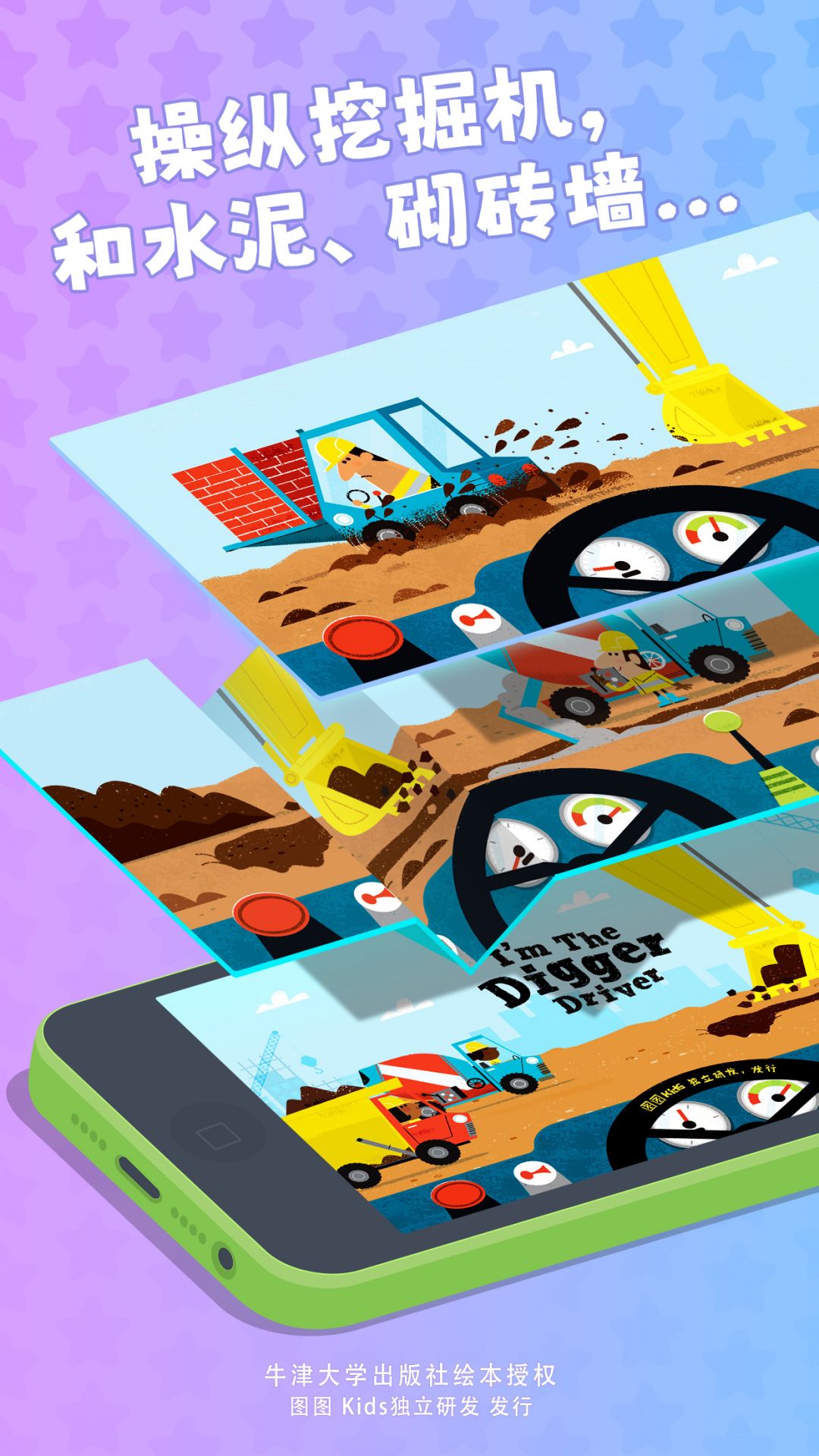 启动挖掘机之前,还有很多工作要做哦!穿戴好我们的保护装备可以保障我们安全的作业。这些装备有哪些呢?它们都是怎样保护我们的呢?穿好防护装备,尽情发挥想象,拼装一台属于你的超级挖掘机吧!炫酷机甲、可爱熊猫,BlingBling闪耀宝石,哪一个才是你心中的最爱?接下来驾驶着挖掘机和各种各样的车车开始工作吧!挖地基、和水泥、砌砖墙、吊装房梁……各种各样的任务都等着你和团队来完成呢!小心哦!工地里还有各种小意外,沉着机智的你一定会想到办法解决的!