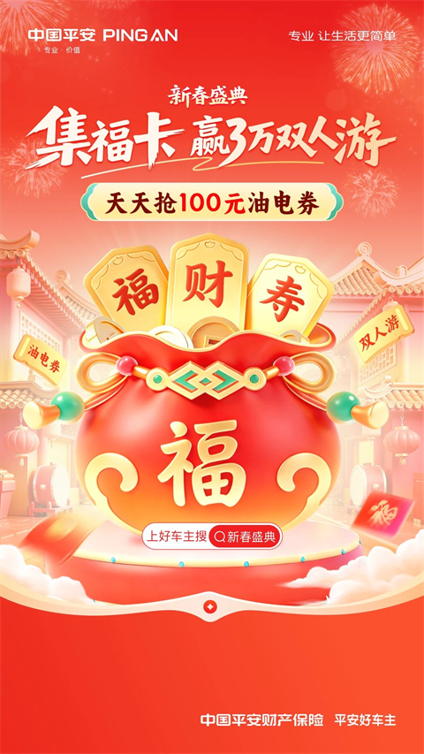 1、【好车主新春盛典】好车主新春盛典,集福卡,赢3万元国内双人游,保险低至72折起,天天抢100元加油充电券。