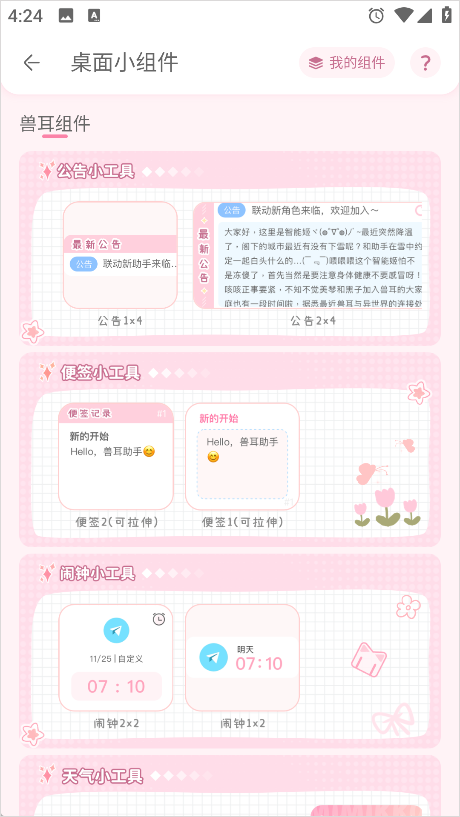 点击桌面组件可以将便签,闹钟等小组件一键添加到桌面。