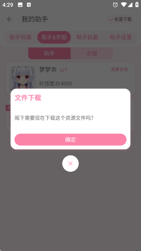 5、进入到助手服装之后,会显示你拥有的所有二次元角色,点击下载切换即可。