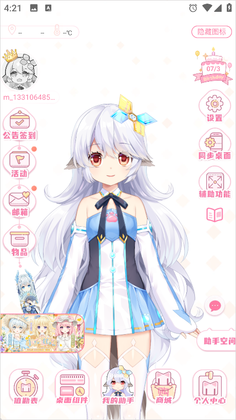 兽耳桌面App是一款将二次元萌宠桌面美化软件。用户可选择个性化兽耳娘角色在手机桌面中互动,角色支持语音唤醒、情绪反馈、换装设定等,具备高度陪伴感与沉浸体验。兽耳桌面App还集成天气提醒、待办事项、时间提示等实用功能,兼顾可爱与实用,支持节日剧情、成长系统与语音扩展,为用户打造持续更新的专属桌面“小世界”。