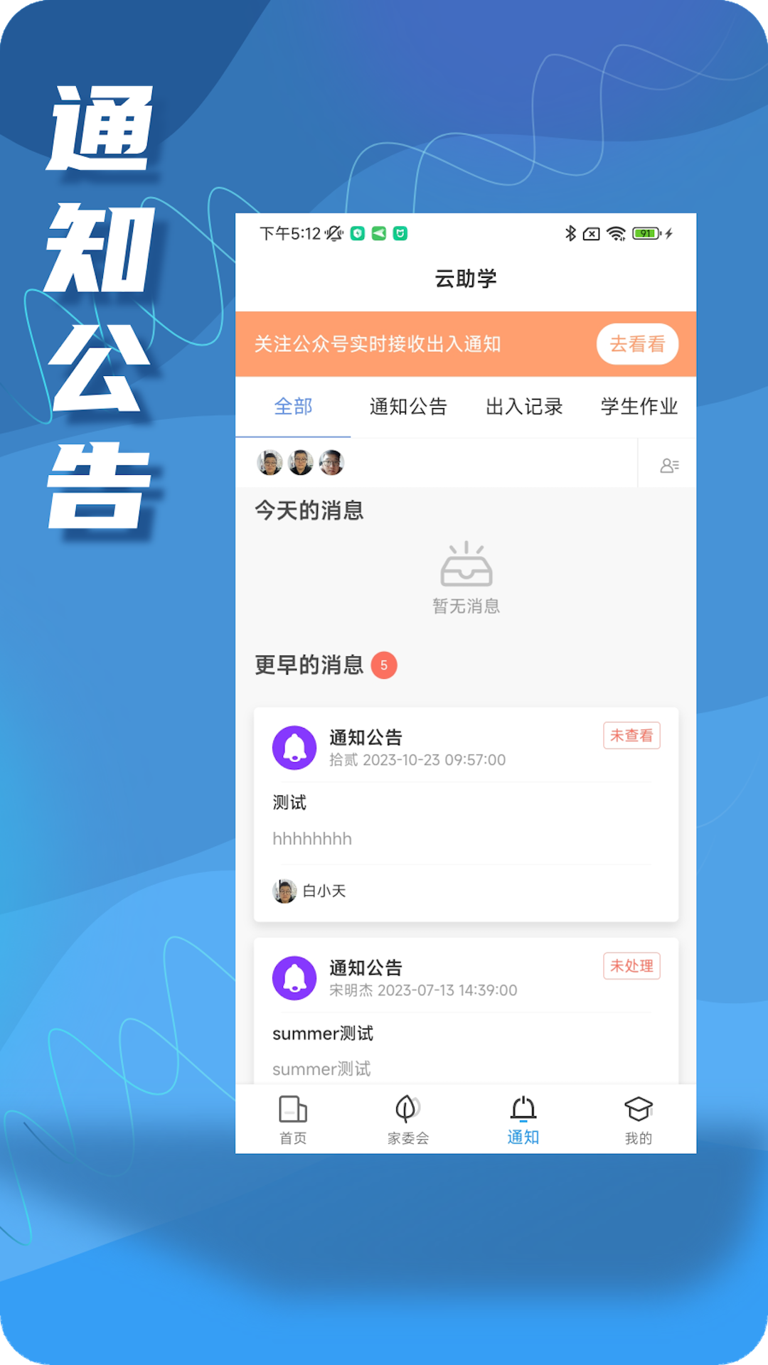 其中家校连接:学生出入校园的安全通知信息。