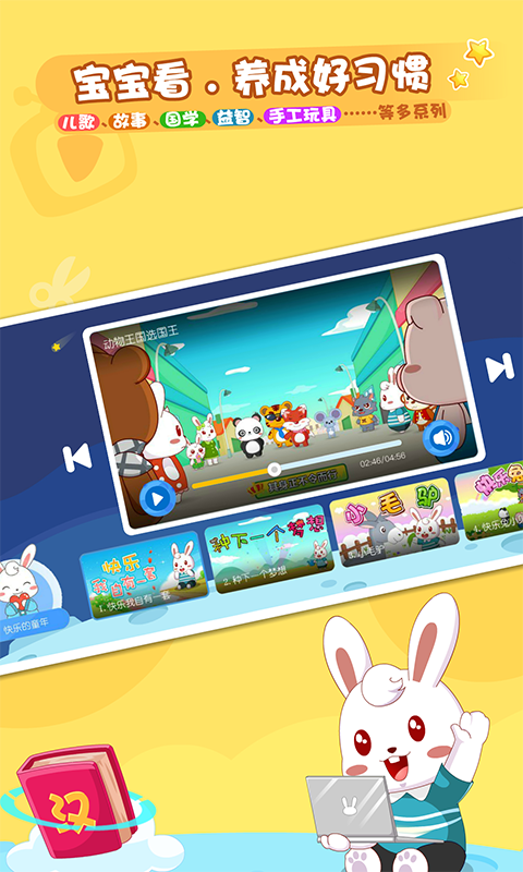 【兔小贝乐园】是款专为0~6岁宝宝提供早教动画视频以及学龄前益智互动游戏的APP!兔小贝系列内容已在各大平台播放百亿次,涵盖儿歌、故事、启蒙认知、习惯培养、手工玩具、十万个为什么、国学、识字、拼音、英语、数学等丰富早教内容,让宝宝从快乐中汲取成长的智慧!