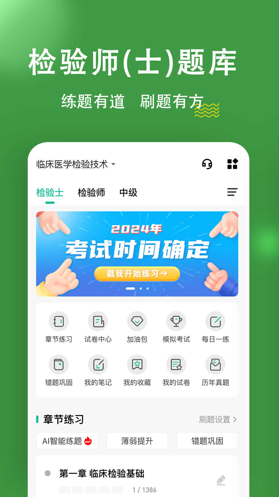 检验师练题狗适用于全国卫生专业技术资格考试,临床医学检验技术(师)考试专业,为备考临床医学检验技术考试的同学提供题库练习,本软件涵盖智能题库、智适应学习多种助考随身学功能,全面囊括进检验师、检验士考试的知识点,包括章节练习、模拟测试、历年真题、错题巩固等功能模块,通过学员答题的准确率分析学员对知识点的掌握程度,总结出已掌握、未掌握、薄弱知识点,解决用户考试备考刷题需求,随时学习刷题,,在复习过程中查漏补缺,值得你信任的备考助手!