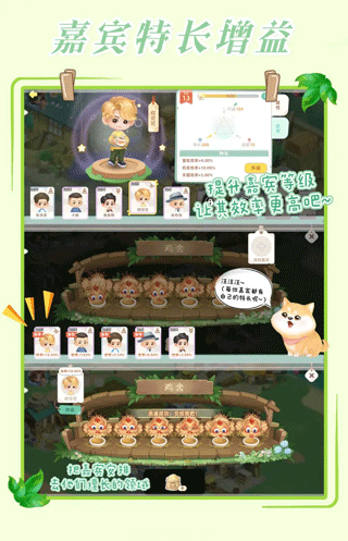想提升效率就让嘉宾们助你一臂之力吧~获得相应嘉宾碎片,提升嘉宾的特长等级,让其效率提升吧。