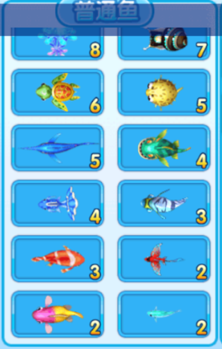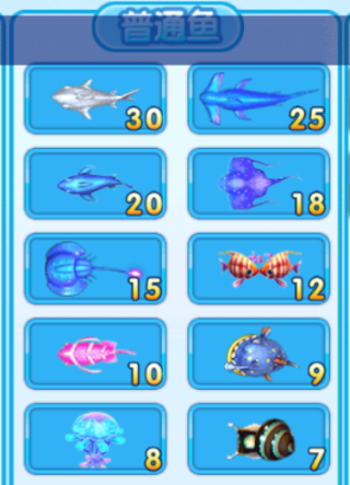 4、渔场会出现奖金鱼、普通鱼和特殊鱼。