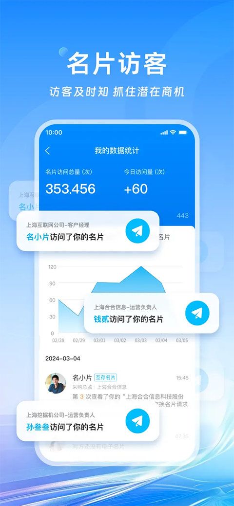 有人查看您名片时,即使告知您,让您可以快速交换名片,拓展商业人脉。