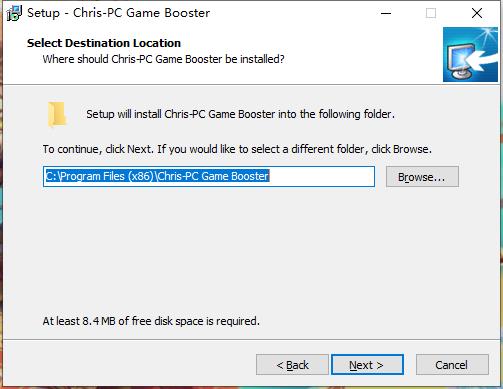 安装向导默认设置的软件默认安装路径为C:\Program Files (x86)\Chris-PC Game Booster