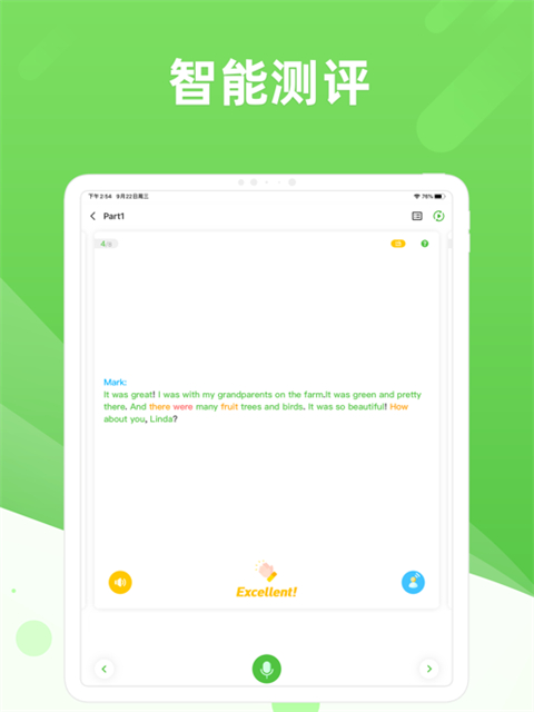 口语易基于世界顶尖的剑桥大学语音识别和分析技术(该技术连续11年获得第1名的语音识别和分析技术),可以针对英语口语水平做出智能化评测。学生可进行跟读、并获得客观的打分,通过分数的高低判断自己英语发音的准确性,为英语学习者提供了一个敢说敢练的平台,与学校教育相辅相成,让孩子的英语口语水平得到大幅提高!