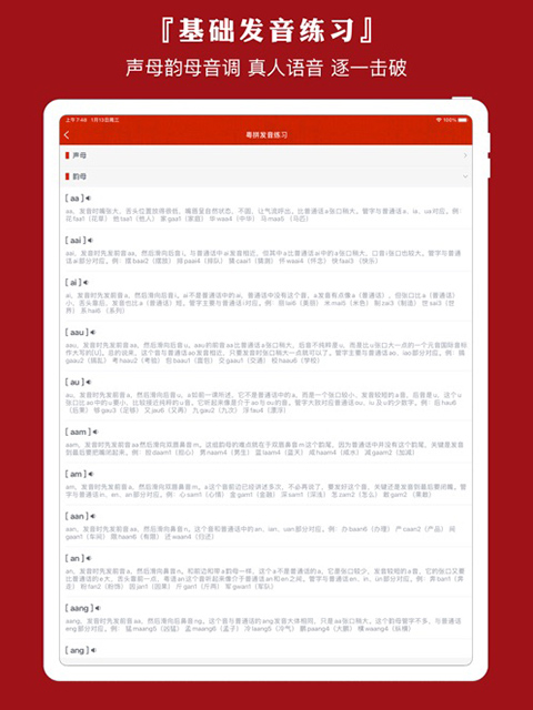 粤语通ipad是一款针对苹果iPad设备打造的一款粤语学习软件。粤语作为中国一门特色的地方语言,想要学习说粤语的朋友也很多。这是一款可以为用户提供常用粤语拼音以及发音的翻译查询,能帮助用户快速的了解粤语,学习粤语的常用词语和情景对话。让你再也不用担心广东话的沟通问题。有需要的用户可以下载使用哦!