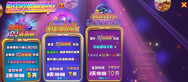 三、律动小甜心DJ消消乐玩法&超级增益特权礼包