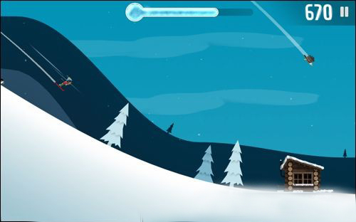 此外你还可以借助下坠来增加速度,当你保持高斜度下坠姿势一段时间后就会喷出黄色火焰,为你增加一级速度,假如你还能继续保持这个姿势一段时间,甚至可以喷出红色火焰,再次为你增加速度,最高可以出现蓝色火焰,三倍加速。在喷火焰的短暂时间里,你可以抵消一次石头带来的冲击,但是无法抵消垂直摔入雪堆里的冲击。