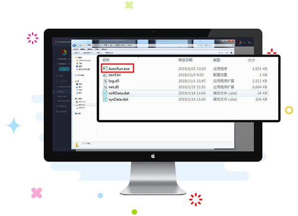 6、程序下载完毕之后 找到【客户机开机自启】文件夹,下面的 AutoRun.exe 文件设置为开机自启;