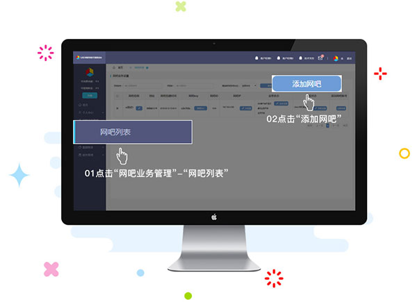 首先点击【网吧业务管理】→【网吧列表】→【添加网吧】