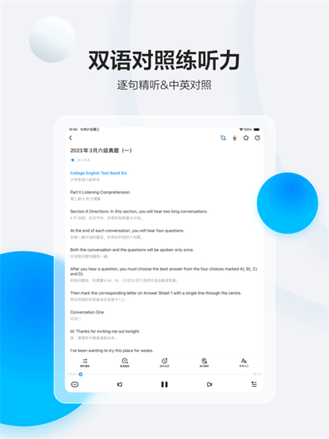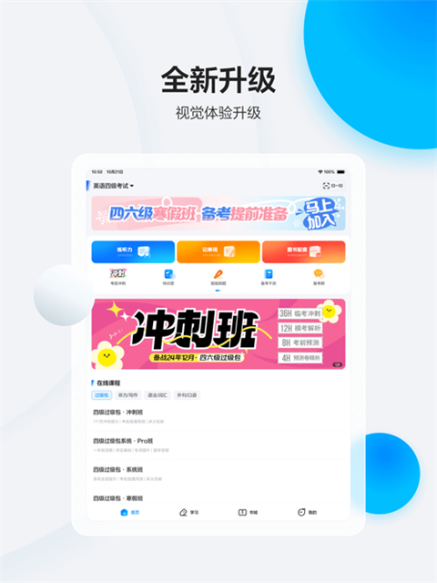 五大专项深度优化,一站式解决单词、听力、阅读、翻译和写作练习,专项能力查缺补漏,四六级考试so easy!