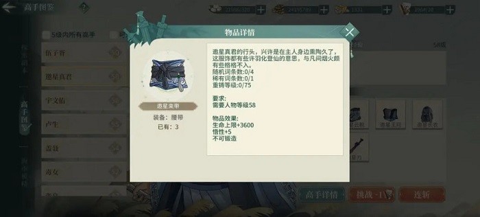 邀星套装,主要是腰带有用,可以给玉真,曲玉等带回复的侠客,会有奇效