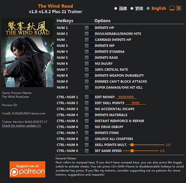 3、接着就是运行紫塞秋风风灵月影修改器,按照上面的按键功能,就是相对应的功能;