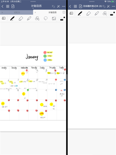4、点击新建或者打开另外的笔记本,两个笔记左右同时出现在同一个屏幕,这样就可以对goodnotes实现左右同时分屏了