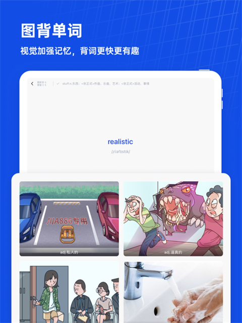 6、一个单词一张图,利用图形建立单词与真实环境的联系,打造最易记、最难忘的背单词软件。