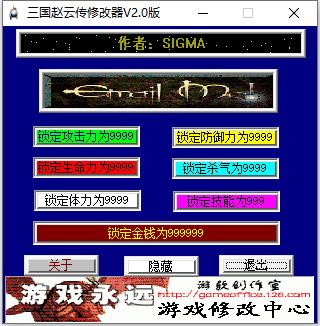 三国志赵云传修改器,顾名思义就是对三国志赵云传的游戏数据修改啦,玩家可以利用三国志赵云传修改器这款软件进行多种的游戏数据锁定,例如锁定攻击力为9999、锁定防御力为9999、锁定生命力为9999.....总之一句话,有了三国志赵云传修改器,玩家就是无敌一般的存在。