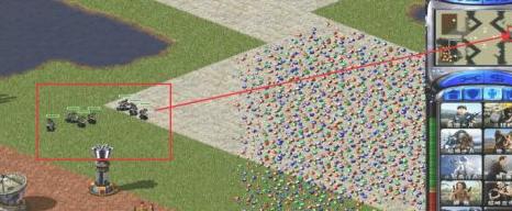 1、选择苏联进入游戏,建造兵营后使用围墙围住兵营,再建造复制中心,我们把矿车停下,金钱停留在了20108上。