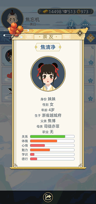 【16岁】解锁媒人,介绍知己可以看脸不过要倒贴钱100两起,知己立誓只能旧版本辽 等考上状元就能选大学士总督的女儿啦,魅力学识会稍微高一点。