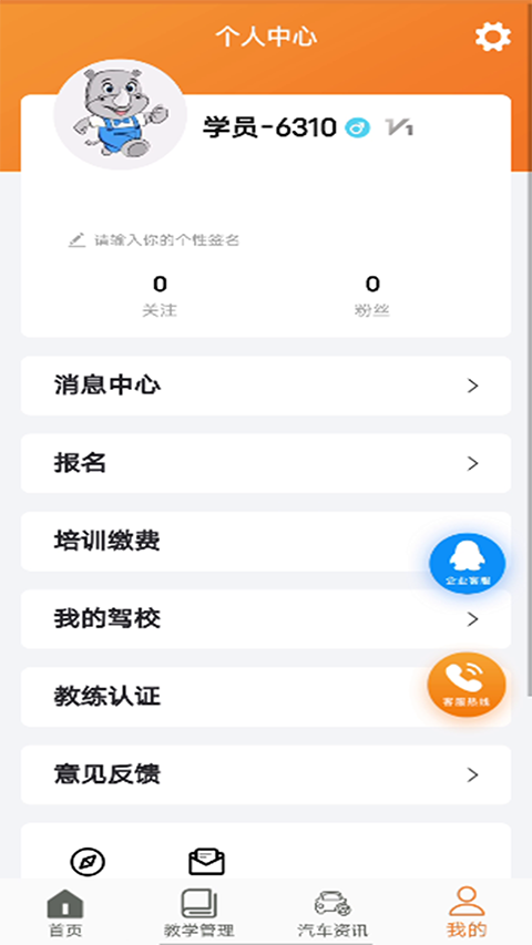3、所有教练的个人资料可以在线查看,也可以选择比较倾向的教练学习。