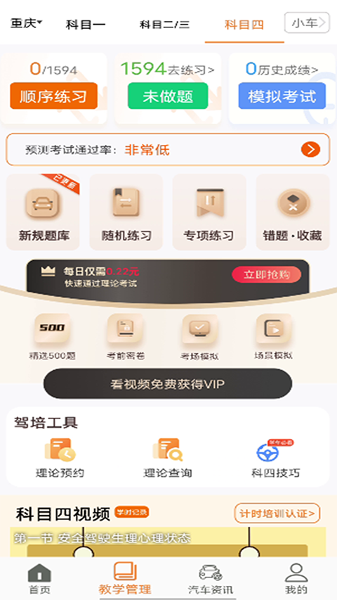 安安车生活软件是一款集分享、交流、小视频、科目试题练习等于一体的驾驶学习APP。该软件致力于实现驾培市场信息透明化,为全国驾驶培训学员提供从报名、培训、拿证全过程的优质驾驶培训服务信息,为驾校、考场、教练提供服务展示平台的内容+工具性互联网产品。安安车生活app为学员提供科目一和科目四理论学习,各种训练模式,包括顺序练习,随机练习,强化练习和专项练习功能,具有错题收藏功能并与云同步,保证在不同的手机上都能够看到自己做过的题。并且系统会为学员提供理论计时功能,可以边看视频边计时,符合规定的学时将会计入到有效学时系统。