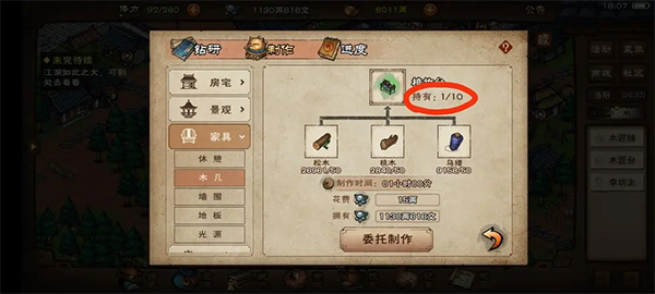 放置分:制作的出来的家具所获取的分数,绿色上限10分,蓝色上限15分,紫色上限20分,橙色21分。