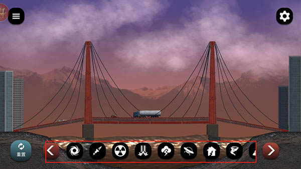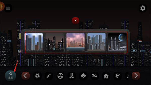 1、打开游戏后,刚开始游戏的时候点击重置可以选择城市背景,比如高楼大厦、夜晚、大桥等等;