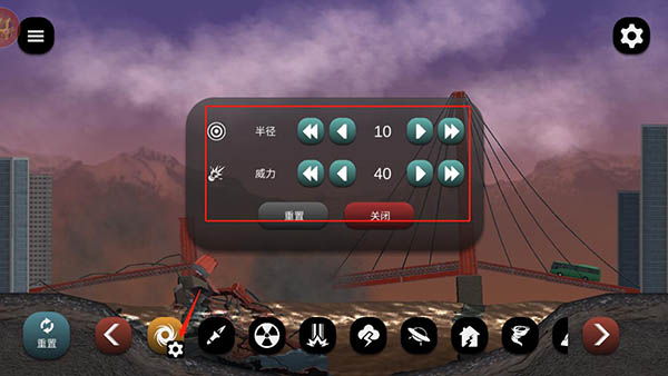 失控城市模拟器最新版是一款新奇有趣的模拟类游戏,这个游戏和拆迁模拟器游戏的主题有点相似,都是在破坏过程中享受解压的乐趣。进入游戏后玩家可以在这里选择不同的城市模拟破坏的过程,你可以用核弹、导弹、黑洞、激光束或闪电粉碎城市,如果想清晰的观察破坏过程中的细微操作,还可以调节它们的威力或者更改半径,以便您可以目睹这些武器造成的破坏。游戏操作简单上手容易,画面感丰富多彩,还能让你体验到震撼的立体3D视觉效果,赶紧来挥挥你的小手让一切毁灭吧!