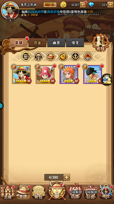 海洋王国手游官方版是以经典日本动漫《海贼王》为背景打造的一款卡牌回合制rpg冒险类游戏,以高度还原的动漫角色和场景,吸引了大量粉丝的关注和喜爱。游戏中,玩家将要收集主角路飞等一众角色,与其他海盗一起冒险,探索未知的领域,寻找传说中的宝藏。而在冒险的过程中玩家需要通过战斗、升级、收集装备等方式,提升自己的实力,以应对越来越强大的敌人。海洋王国手游内还设有丰富的剧情任务和挑战模式,玩家们在游戏中可以去利用各种战术来组建出一支专属于自己的海贼战队,接着去击败一路上所有遇到的强敌,非常有趣。总体来说"海洋王国"是一款集冒险、战斗、收集、养成等多种元素于一体的角色扮演游戏,无论你是《海贼王》的忠实粉丝,还是对冒险游戏感兴趣的玩家,都能在这款游戏中找到属于自己的乐趣。