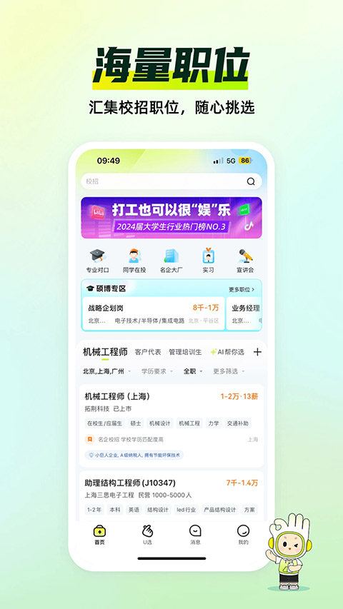 5、应届生,中国领先的大学生求职网站伴你筑梦起航。
