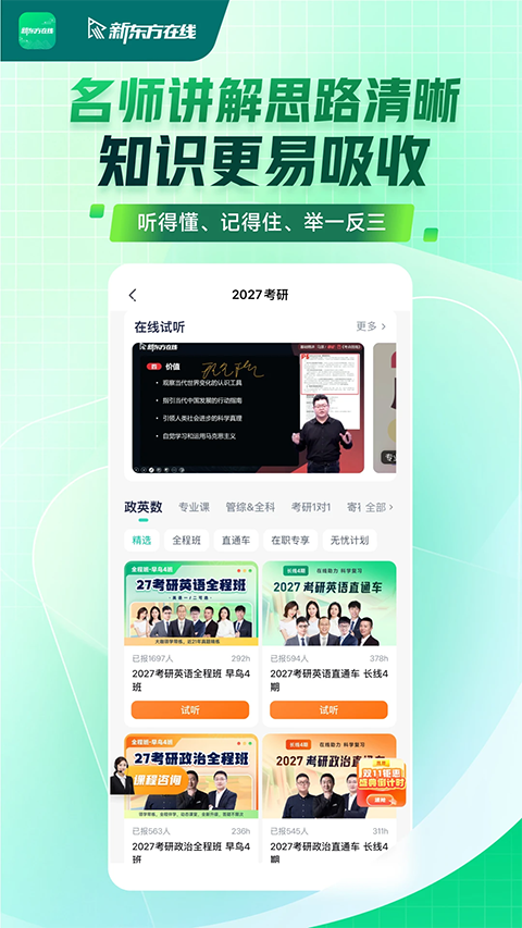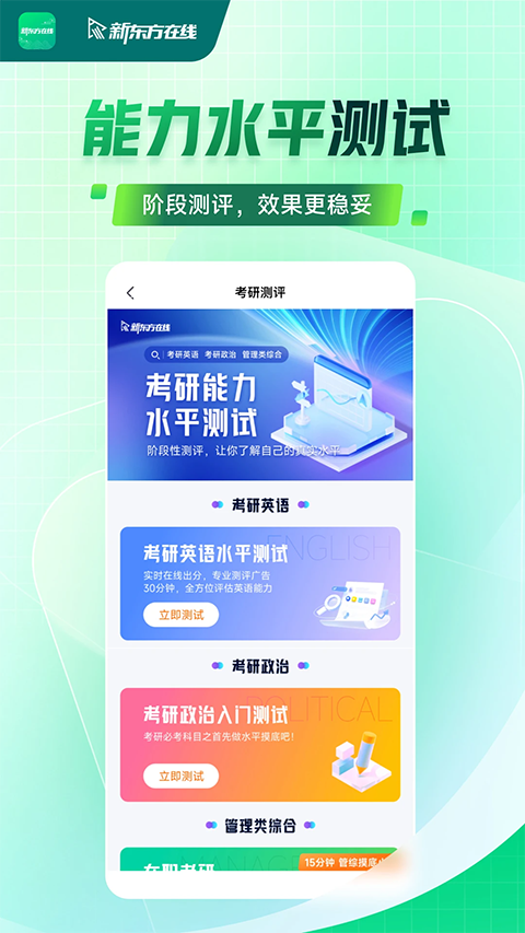 新东方在线app是一款专业的网络在线教育服务软件,软件UI界面交互简约、功能强大齐全,不仅凭借着强大师资力量与教学资源,以及国内顶尖的教学服务及课程体验团队,融合超过2000门专业课程,包括考研,四六级、雅思、托福、GRE、GMAT、教师资格证、日语、韩语、商务英语等近30个品类,甚至是海量的免费课、公开课等等于一体,致力于将优质的面授式传统教育互联网化,以此全方面满足大家的学习需求,提供个性化、互动化、智能化的卓越在线学习体验。并且新东方在线app不受教育资源限制,不受空间与天气限制,不受时间限制,且操作灵活简单,大家只需打开手机即可随时随地想看就看,想学就学,各种干货秘籍,助您全程考试无忧,一切尽在掌握,因此绝对是广大学生必备的学习的好帮手。