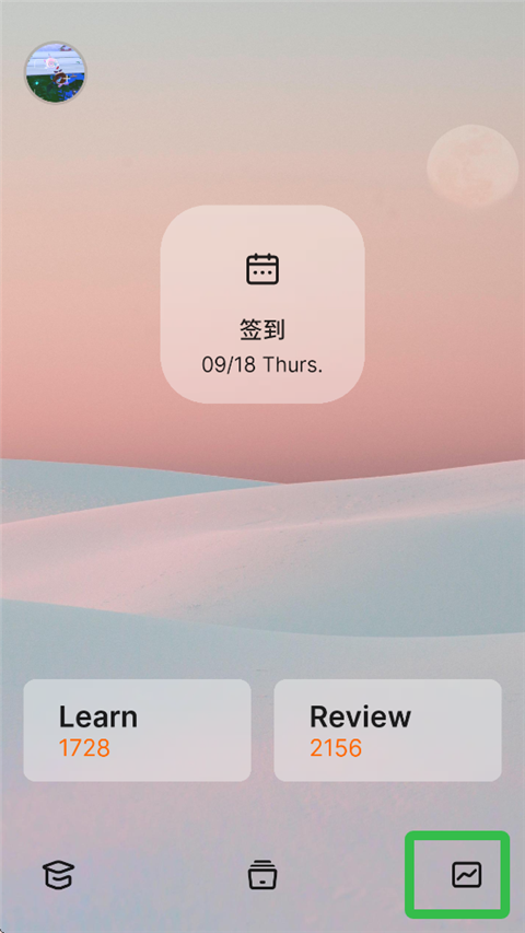 1、打开不背单词app免费最新版,点击左上角个人头像。