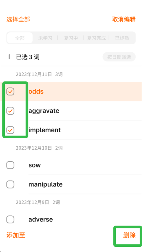 2、下滑选择【生词本】