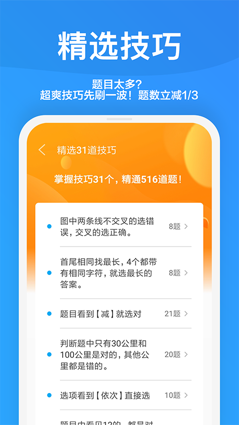 一起驾考App是一款驾照考试神器,在这里所有的考题都是汇集了历年考试真题以及各种详细视频讲解,帮助用户能够更好的理解和掌握考试要点。你只要记忆少量的技巧,就可以刷掉近1/3的题目,再加上精简500道题,以及考前密卷、考前冲刺,确保你能快速通过考试,这里有专业的题库,涵盖范围广,专项的练习,突击你的考试弱项。还可以帮助用户根据错题针对性训练,做多了也就会了,大大提高了学习效率,让用户可以快速的考过科一和科三,有需要的小伙伴快来这里下载一起驾考官方版试试吧。