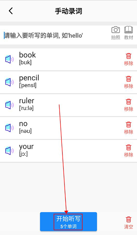 选择完毕之后用户点击下方的“开始听写”就可以进入听写界面啦!