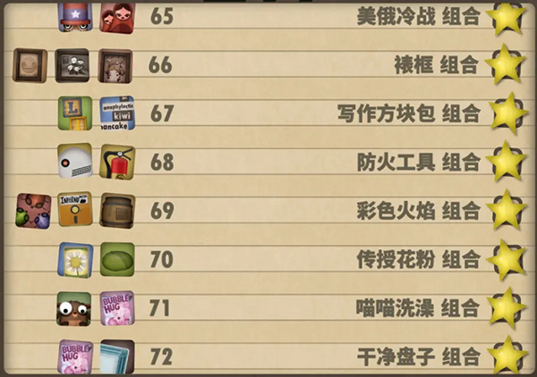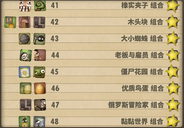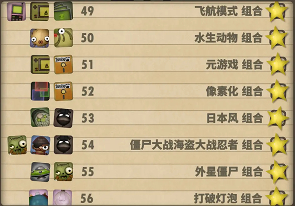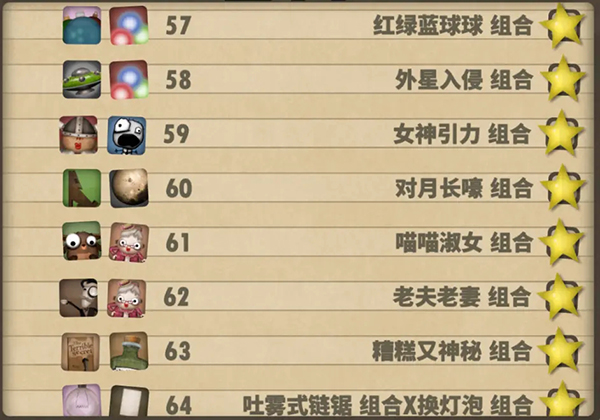 五、33—40组合:僵尸花园组合:Instant Seed Packet(1) Toy Zombie(4);等蛋组合:Egg Pack(3) PhoenixEgg(4);令人费解的冒险组合:Tetronimos(4) Gentleman Adventurer Doll (4);粘粘世界组合:Goo Ball Pack(4) Casual Game(4);飞行模式组合:Cell Phone(4) Handheld Fireplace(4) Gaming Tablet(4);水下组合:Blowfish(3) Miss Hexopus(4);嵌套游戏组合:Handheld Fireplace(4) Beta Version(4);像素像素化组合:Pixel Pack(4) Beta Version(4)