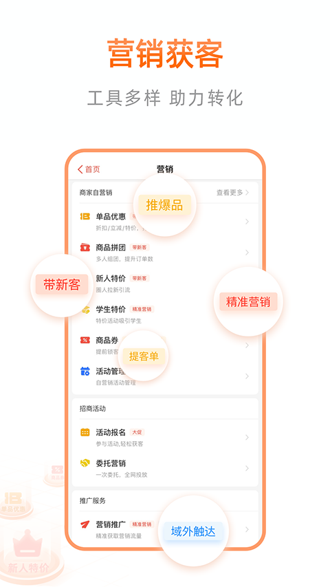 门店个性化活动与平台活动,多种玩法灵活组合,快速获客