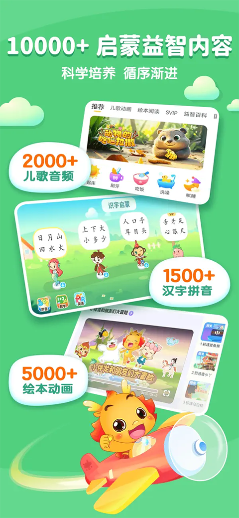 英语学习、生活习惯养成、儿歌、经典唐诗、算术、认知、礼貌、成语...应有尽有