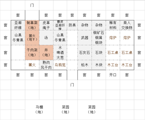 20箱子、1篝火、2菜园(地)、1乌鸦笼