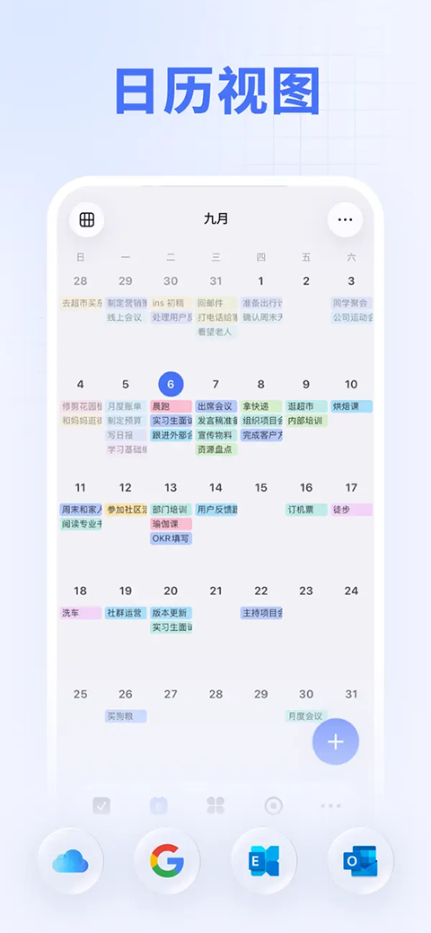 - 月视图自由缩放:支持双指放大月视图,轻松查看某段时间的更多任务,浏览更灵活,操作更高效。