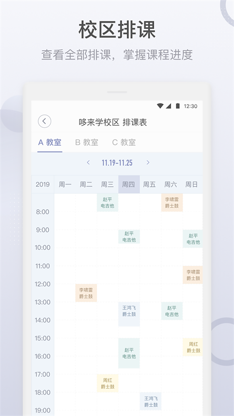 九拍教师App是一款针对音乐教育机构设计的管理软件,该软件能方便机构负责人、课程顾问对日常教学教务做日常管理,也方便老师进行备课和上课,这里提供了海量音乐相关的课程,这样通过手机即可轻松在线进行学习了,便捷又实用,同时还提供了班级群聊,以便加强师生沟通。除此之外该软件也能够在线上提交作业,这样的话同学们就能第一时间知道自己的作业评分,总的来说该软件既能够方便学生,也能够节约老师的时间,非常的方便,有需要的朋友快来本站下载吧!