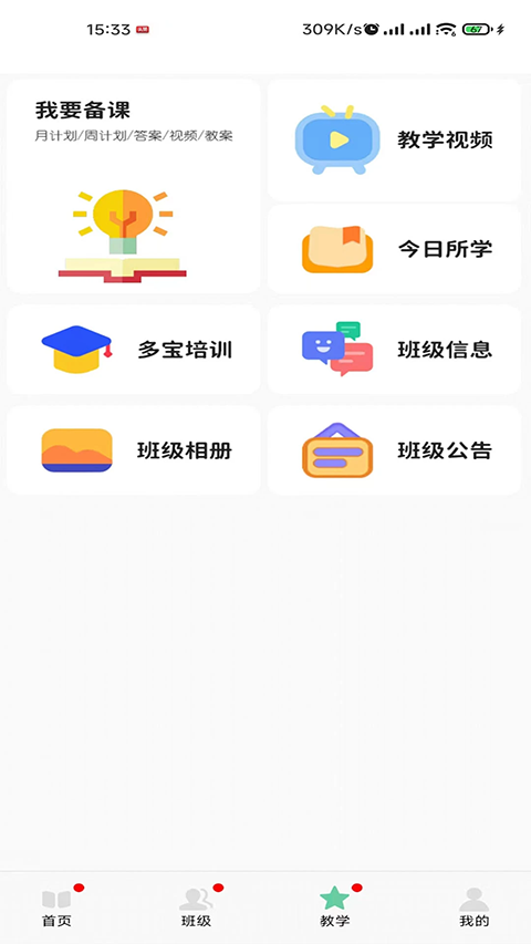 多宝课堂是一款专门为幼儿园打造的儿童教学app,软件涵盖我的课程、教育培训、无价之宝等方面,辅助教师们更好管理班级。我的课程板块内容涵盖小班、中班、大班全学段,并与多宝乐园游戏互动课程关联,教师们可在手机上同步查看课程。软件中的教育培训板块还提供教育教学方面的培训,幼师可在此处进行学习提升。教师们还可以通过软件与班级家长进行沟通交流,及时跟进孩子的情况,为孩子共同建造一个良好成长环境。