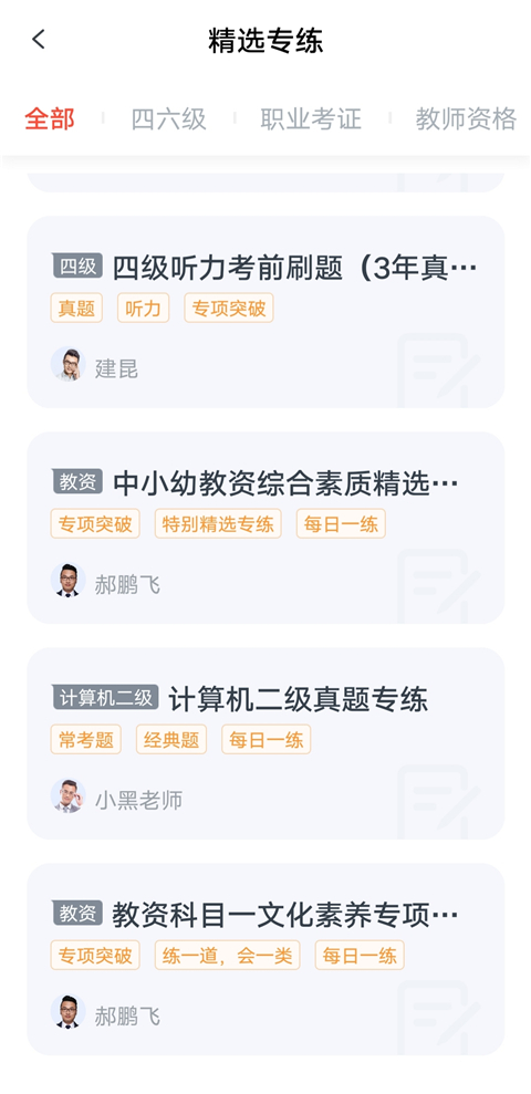 3、选择想要刷的类型题库。