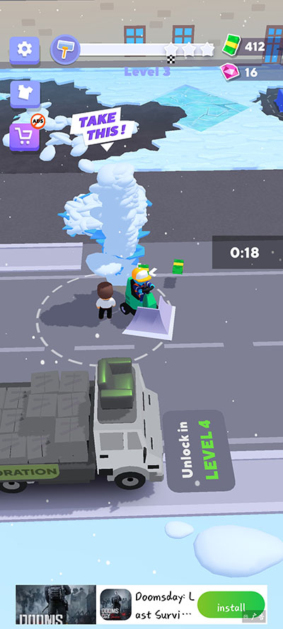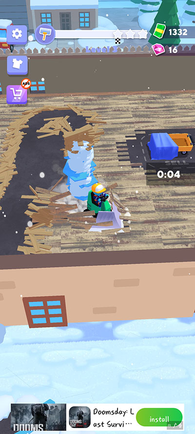 游戏中的清理任务覆盖了冰雪、草地、混凝土以及木地板等多种不同场景,玩家需要根据不同的环境选择合适的工具和车辆进行清理;