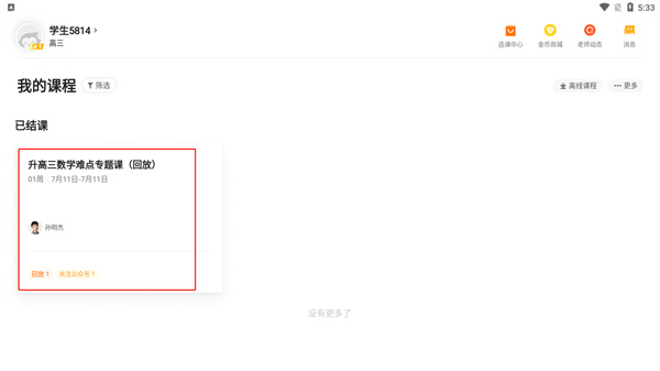 5、返回主界面就可以显示我的课程了,点击进入即可查看;
