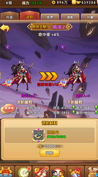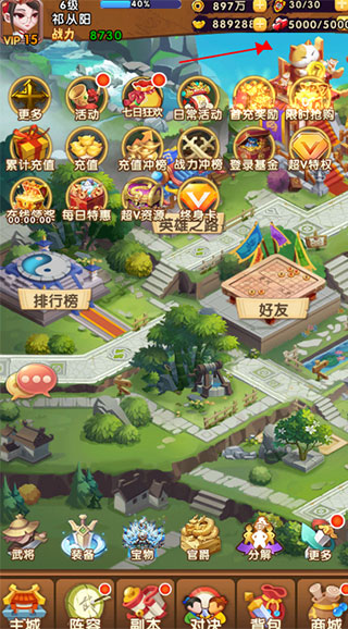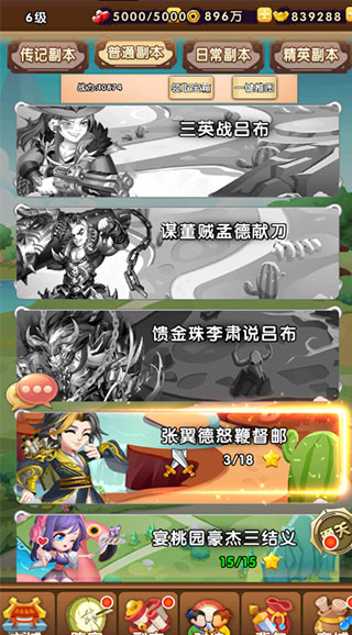 7、阵容搭配好后,去挑战副本获取资源,再用资源继续培养武将即可快速提升战斗力。
