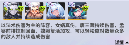 阵容组成:女娲+唐三藏+嫦娥+孟婆